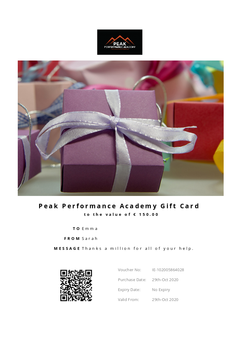Peak Performance Academy allows you to purchase instantly printable gift vouchers, special offers and tickets using the Voucher Connect platform.